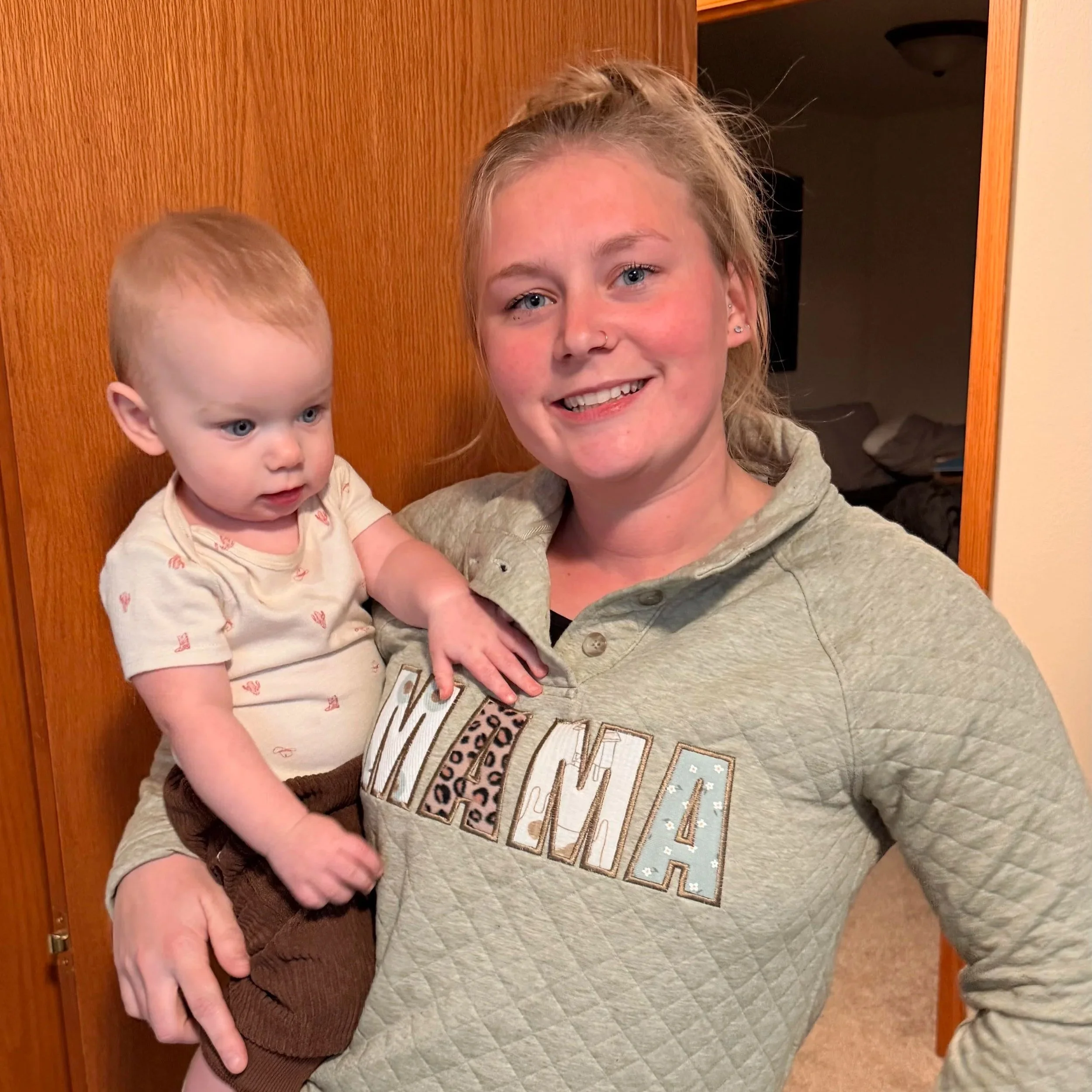 As a first-time mom, being able to incorporate pieces of my baby’s first outfits into one wearable keepsake means the world to me. Every pattern and fabric on this pullover tells a story — I can look at each one and instantly remember the little moments that made me a mama. It’s beautiful, personal, and full of emotion.